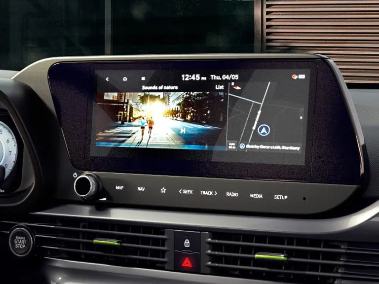 i20 põhivarustusse kuulub 8-tolline puuteekraan. Valikvarustusena on saadaval ka suurem 10,25-tolline versioon koos 3D-navigatsioonisüsteemi ja täiendavate sidelahendustega.
